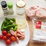 鶏肉を裏返すタイミングでししとう・ミニトマト・ウィンナーを加え、中火で蓋をして一緒に加熱します。 | |