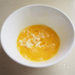 溶き卵にチーズを加えます。 | |