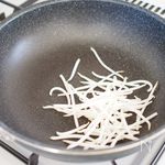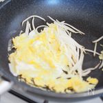 熱したフライパンに油を入れ、モヤシを炒めます。 | |