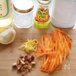 人参は皮をむいて細切りにします。 柚子皮も細切りにします。 アーモンドは粗く刻みます。 |