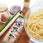 材料を揃えます。 パスタ(約150g)は1%の塩を加えて茹でます。 |