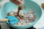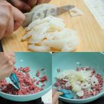3. レンコンはいちょう切りにします。フライパンにゴマ油を入れて火にかけ、豚ひき肉、レンコンを炒めます。 | |