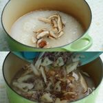 5・ 炊飯器に米、1をシイタケの戻し汁ごと入れ、4を加えて炊飯します。 | |