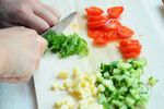 3・大葉は千切り、ミニトマトは薄くスライスして、生ハムは食べやすい大きさにカットします。ベビーチーズ、きゅうりは5ミリ角にカットします。 | |