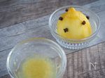 ★のレモンはゼスターで表面の皮を削り、絞った果汁と混ぜておきます。残った果皮にナイフで穴を開けてクローブを差しておきます。 | |