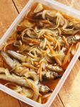 2⃣に焼き上がったししゃもを熱いうちに入れ味がなじむように野菜を上にのせます。 冷めたら蓋をして冷蔵庫で30分以上冷やしてください。(理想はひと晩ですが、浅漬けでもおいしいです♪) |