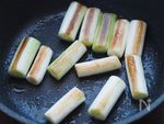 フライパンにオリーブオイルを引き、長ねぎを入れて中火で焦げ目を付ける。 あまり動かさず、しばらくそのままにしておくときれいに焼き目が付きます。 |