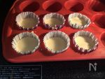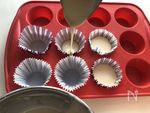 耐熱容器にマフィンカップを入れて、生地をカップの7〜8分目まで流し入れます。 | |