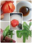 ◎トマトは洗って皮とヘタを取り種を取ります。 ◎米を洗い、料理酒を入れてからすし飯の分量水を入れてトマトとだし昆布を入れすし飯炊飯します。 ◎器にA 酢 大さじ4と1/2、砂糖 大さじ3、塩 小さじ1と1/2 を入れて混ぜ合わせておきます。◎さやえんどうは洗ってスジを取り、鍋にお湯を沸かして塩を入れ(分量外です)サッと茹でます。 |