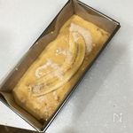 4をパウンド型に流し入れ、残しておいた縦半分のバナナを乗せたら仕上げ用のきび砂糖を全体にかける。 | |