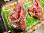 冷蔵庫から取り出し、オーブンシートを敷いた天板に乗せていく。その際タレはとっておく。 | |