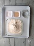 容器に強力粉、ドライイースト、塩を入れる。ぬるま湯を加える。 | |