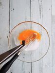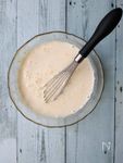 生クリーム、牛乳または豆乳を加えその都度泡だて器でよく混ぜる。 | |