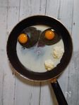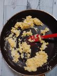タルタルソースを作る。フライパンをペーパーで汚れをふきとりB 卵 2個、マヨネーズ 大さじ2、牛乳 大さじ2 を加える。 |