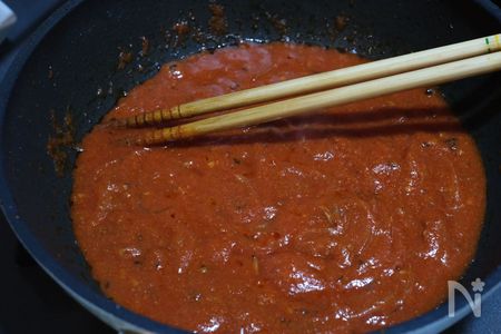 ・トマトソースにしいたけのみじん切りを加えると奥行きのある味になります。