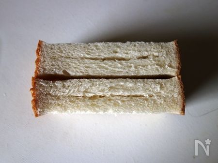 1. 食パンは半分に切って断面に切り込みを入れ、オーブントースターで焼きます。 焼いてから切ると、切り口がガタガタになってしまうので、焼く前に切り込みを入れるのがポイントです。 また、食パンは厚みがある方がたくさん詰め込めるので、4枚切りがおすすめです。