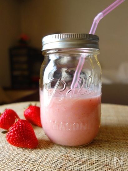甘酒の甘みで砂糖なしでも十分甘い☆いちごの爽やかな香りとほのかな酸味がアクセントの、体に優しいスムージーです♪