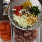 全部材料みじん切り、鶏ももは一口大、にんじんを入れる場合はすりおろし | |