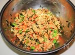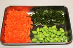 人参は3㎜ぐらいの角切り、切昆布は5㎜ぐらいの長さにカット、枝豆は鞘から出す | |