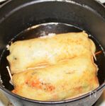 ①の油揚げに④の中だねを載せて巻き、巻き終わりを爪楊枝でとめる | |