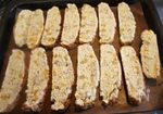 焼けたら1㎝程度の厚さにカットして、オーブンの天板にオーブンシート等を敷いた上にのせて、160℃で15分焼いたら出来上がり |
