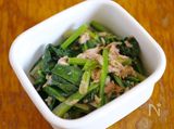 ほうれん草をざく切りにし、ツナ缶、めんつゆ(3倍濃縮)、レモン汁と和える。 |