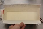 《パウンド型がない場合は牛乳パックで簡単に型が作られます。》 まず、写真のように真ん中に切り込みを入れる。 |