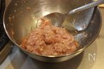 ボウルにB 鶏もも肉ミンチ 200g、塩 小さじ2分の1、片栗粉 小さじ1、酒 小さじ2 を入れて粘りが出るまでしっかりと混ぜる。 |