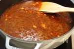 鍋にA 豆板醤 大さじ2、碑県豆板醤 大さじ1、豆鼓醬 小さじ2、花椒 大さじ1、サラダ油 大さじ3 としいたけの軸を入れて加熱する。(弱めの中火)2,3分しっかりと炒めて香りを出す。 |