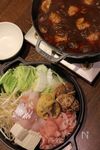 スープに4の鶏ミンチをスプーンで落とし入れ、鶏団子にする。 C しいたけ 4,5個、白菜 3分の1玉、豆腐 1丁、もやし 1袋、豚薄切り肉 200g、白身の魚 4切れ、がんもどき 2個 を食べやすい大きさに切り、盛り付ける。 |