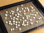 切り餅を5mm角に切り、オーブンシートをしいた天板に広げ160℃のオーブンで15分焼く。 | |