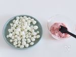 イチゴチョコは粗く刻み耐熱容器に入れ電子レンジ600w・40秒~加熱し溶かす。餅の1/3量を加えチョコを絡める。 | |
