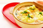 土鍋に、C材料の水・白だし・酒・しょうゆ・砂糖を入れて加熱し、ひと煮立ちしたら、1.のほうれん草と、5.の巾着を入れて弱火で10分くらい煮込み、塩で味を整える。 1.の大根のすりおろしと、明太子をのせて火を止め、フタをして2分蒸らして完成です☆ |