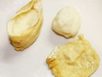 いももち巾着を作る。 じゃがいもは、皮付きのまま4等分くらいに切って耐熱容器に入れ、ふわっとラップをかけ、電子レンジ(500w)で2分半加熱する。 熱いうちに皮をむいて、フォークでつぶし、片栗粉・塩を加えて混ぜ合わせる。 粗熱が取れたら、半分に分けて丸く形を整え、2.の油揚げに詰める。 |