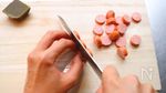 玉ねぎ・カレールウはそれぞれみじん切りにする。 ウインナーは小口切りにする。 パセリはみじん切りにする。 |