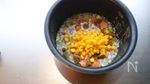 米を研いで、炊飯器の内釜に1合分の水を入れ、玉ねぎ・カレールウ・ウインナー・コーン(缶詰)・バター・固形コンソメを入れてサッと混ぜる。 | |