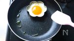 フライパンにサラダ油を入れて加熱し、卵を割り入れて 目玉焼きを焼く。 |