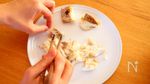 桜の塩漬けは水につけて、2-3分おく。 水気を切って、茎の長さを1㎝くらいに切る。 桜の塩漬け(飾り用)は別のボウルで水に2-3分つけて、水気を切っておく。 |