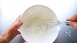 ボウルにB 生クリーム 50ml、砂糖 小さじ1 を入れてゆるめに泡立てる。 |