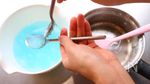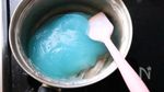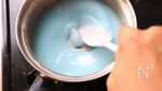 鍋にA 片栗粉 30g、砂糖 小さじ2、かき氷シロップ(ブルーハワイ) 小さじ1、水 250ml を入れてよく混ぜ合わせる。中火で加熱しながら、とろっとするまでよく混ぜる。 |