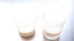 6.を常温で冷やし、4.の型に半量ずつ入れる。 (アガーは冷やさなくても常温で固まるため、型のギリギリまで入れることが可能です。 少し固まってから、冷蔵庫で冷やします。) |