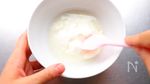 D 水 大さじ2、粉ゼラチン 小さじ1 を混ぜ合わせて、5分おいてふやかす。ラップをして電子レンジ(600w)で20秒加熱し、ヨーグルト(無糖)と混ぜ合わせる。 |