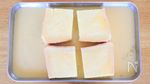 バットに卵液を入れて食パンを浸し、時々ひっくり返しながら30分くらいおく。 | |