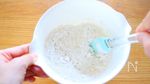 B ヨーグルト 50g、オリーブオイル 小さじ2、はちみつ 小さじ2、水 大さじ1.5 を加えてゴムベラで混ぜ、粉っぽさがなくなってきたら、手で生地をまとめる。 生地を15分くらいおく。 |