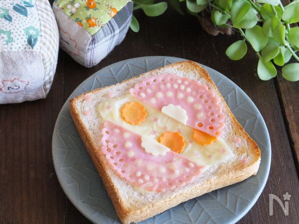 【ハムのレースが可愛い♪型抜きデコトースト】