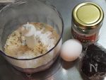 麩はフードプロセッサーで細かく砕く。(ない場合はビニルに入れて棒や瓶でたたくといいです。) | |