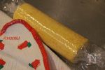 *卵焼きカボチャの作り方 卵焼きフライパンに油を入れて、卵液を落としてじゅっと言うくらい温める。 卵液を1/3程度の流し入れ広げ、くるりと巻く。 端に寄せてもう1/3卵液を入れて最初に巻いた卵に巻きつける。 これをもう一度繰り返して卵焼きを作る。 ラップを広げた所に出して、熱いので布巾などを挟みながらぴっちり丸く巻く。 |