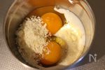A 卵 2個、粉チーズ 大さじ1、牛乳 大さじ1、マヨネーズ 大さじ1/2、塩胡椒 適量 を合わせて混ぜる。 |