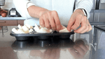 6個どりのマフィン型を使用します。豆乳が無い場合は、牛乳でも大丈夫です。残った食パンの耳は、クルトンにするのがおすすめです(レシピのせています)。