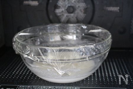 2. ふんわりとラップをかけて、600wで5分電子レンジで加熱します。